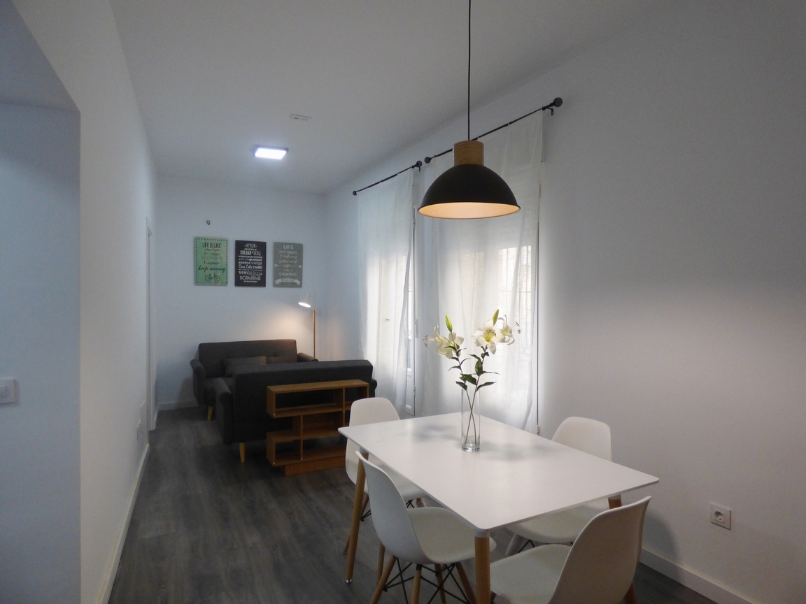Vivienda de principios del siglo XX transformada en apartamento. Llevamos a cabo una reforma integral, modificando por completo la distribución para crear un encantador apartamento de un dormitorio con salón, cocina y baño, todo ello conservando los muros originales de casi un metro de grosor y la fachada original.